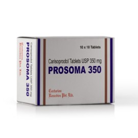 Prosoma 350mg tablet is a muscle relaxant medication containing carisoprodol, used to alleviate acute muscle spasms, cramps and pain associated with musculoskeletal injuries, back pain, strains and sprains. It rapidly relieves muscle discomfort within 30 minutes, providing up to 6 hours of relief.